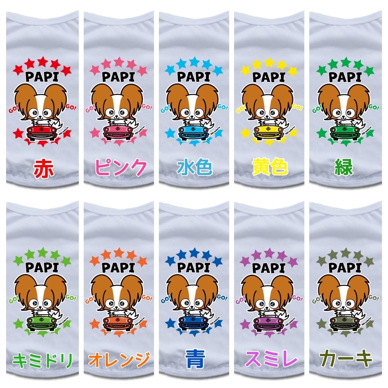 〔Tシャツ生地5色〕×〔クルマのカラー10色〕