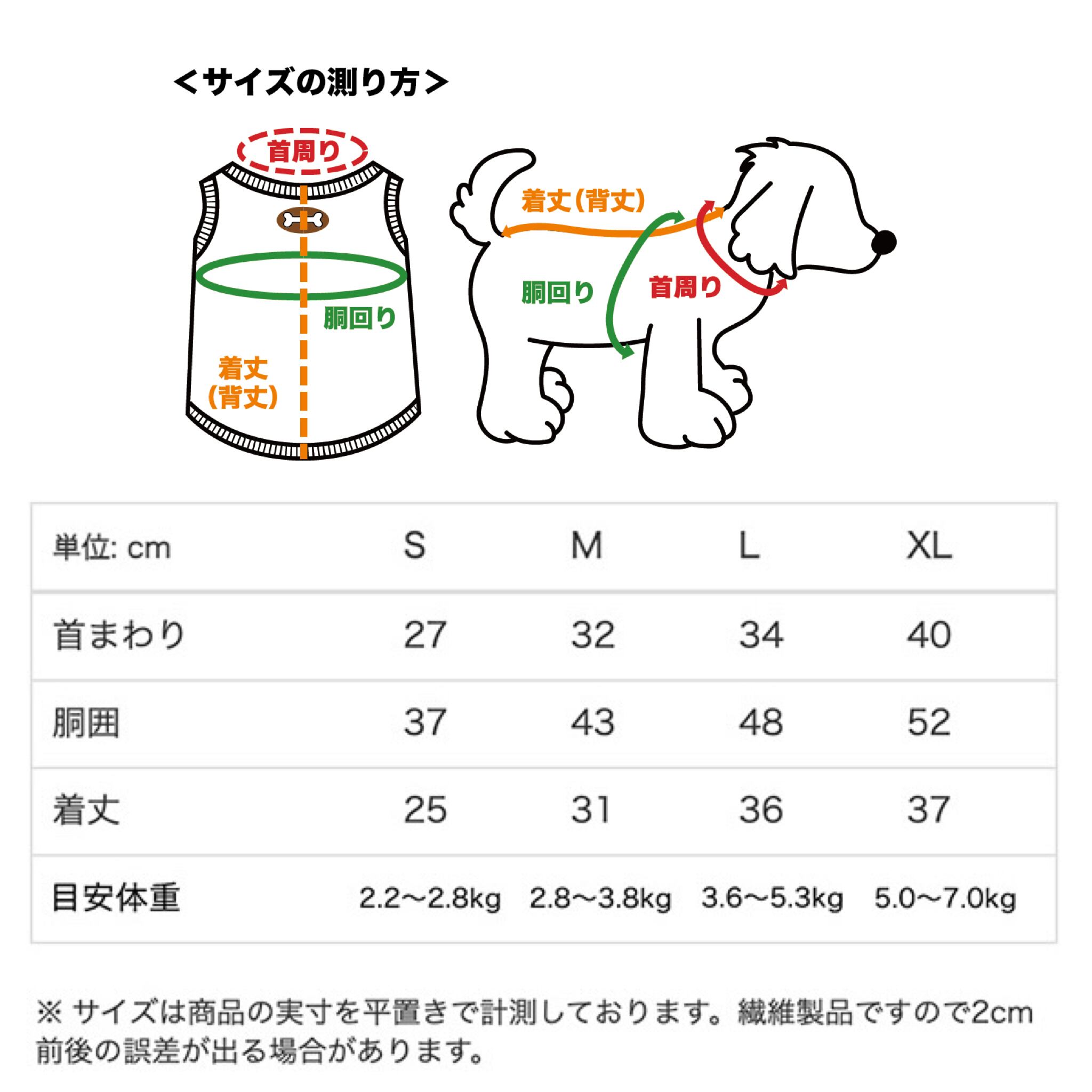 S 着丈25cm/胴回り37cm/首まわり27cm
