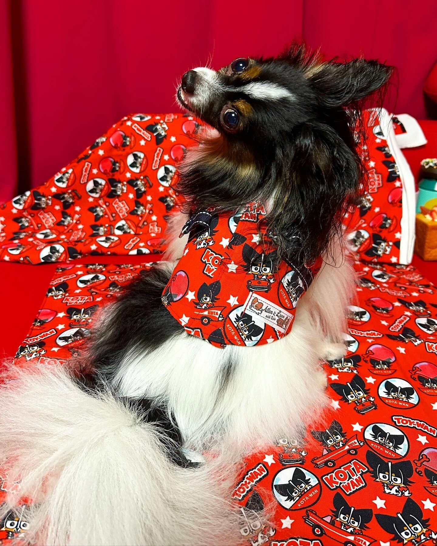 わんちゃんのグッズ用を想定しているので生地の柄としては細かい柄です。